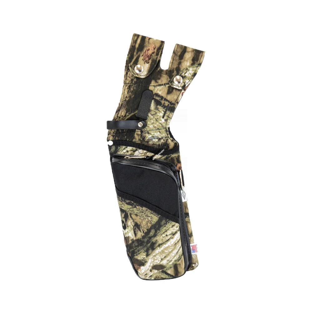 Field quiver with trim design and large 8″ zipper pocket for storing accessories.